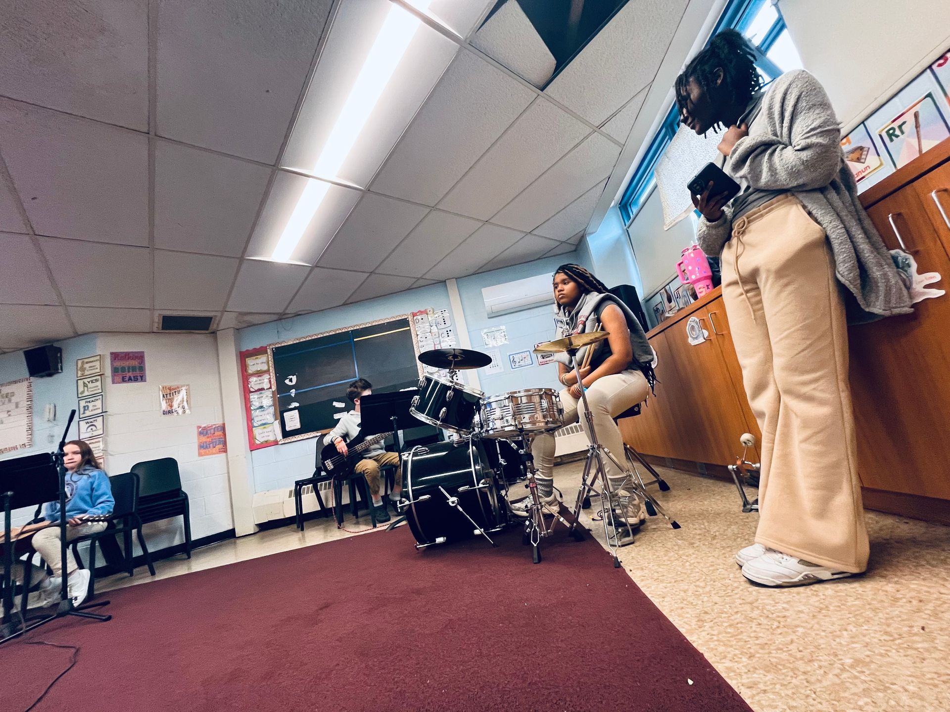 Their middle school music program is designed to cultivate a vibrant band culture within the school. Through this work, students have opportunities to perform in ensembles, learn about arranging, take instruments home to practice, and experiment with sound engineering. The addition of new equipment has helped engage students who might not have seen themselves in a traditional band or orchestra.